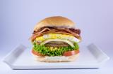 Pão de gergelim, 2 hambúrgueres, 2 muçarelas, alface e tomate.
